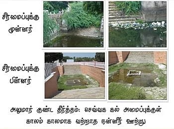 ஆனால் இவ்வளவையும் தாண்டி இந்தத் தீர்த்தம் சரி செய்யப்பட்டபோது, அதன் நடுவில் இருந்த செவ்வக வடிவத்தில் பாதுகாக்கப்பட்ட ஊற்றிலிருந்து நல்ல நீர் ஊறிக்கொண்டிருந்தது - எவ்வளவுதான் காலம் காலமாக சமுதாய தேக்கநிலைகள் எனும் மாசு படர்ந்தபோதிலும், எப்போதும் உள்ளே ஊற்றெடுத்துக்கொண்டிருக்கும் நம் பண்பாட்டை போலவே. என்னதான் முட்செடிகளை வளர்த்து, உடைந்த மதுபாட்டில்களை போட்டு, அழுகிய இறந்துபோன பிராணிகளைப் போட்டாலும், உள்ளே நல்ல நீர் ஊற்றெடுப்பது நின்றுவிடவில்லை.