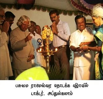 ஒருவேளை, அவர் பிறந்து வளர்ந்த ராமேஸ்வரத்தில் இருந்தே கிடைத்திருக்கலாம். ஜனவரி 28, 2014 அன்று, ராமேஸ்வரத்தில் விவேகானந்த கேந்திரத்தினர் ‘பசுமை ராமேஸ்வரம்’ செயல்திட்ட தொடக்க விழாவுக்கு அவரை அழைத்திருந்தனர்.
