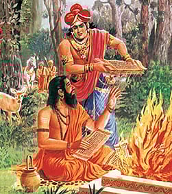 சில ஆண்டுகளுக்குப் பிறகு, சில வேடர்கள், தம் குரு வனவாசிகளின் பைசாசிக மொழியில் ‘ப்ருஹத்கதாமஞ்சரி’ (பெரும்கதைமாலை) எனும் நூலை எழுதியிருப்பதாகவும், அதை அரசவையில் பாடிக் காட்டவும் அனுமதி கேட்டனர். ஆனால் சாலிவாகனனோ, பைசாசிகம் போன்ற இழி மொழிகளில் நல்ல இலக்கியம் எதுவும் இருக்க முடியாது எனக் கூறி அதை மறுத்துவிட்டான். இதற்கு பின்னர் அரசன் நோய்வாய்ப்பட்டான். அதற்குக் காரணம், அவன் உண்ட மாமிசம் தரக்குறைவாக இருந்ததுதான். அது ஏன் என விசாரித்தபோது, அவனுக்கு வேட்டையாடி மாமிசம் கொண்டுவரும் வனவாசிகள், தம் வனத்தில் ஒரு முனிவர் தினமும் இனிய பாடல்களைப் பாடுவதாகவும், அதை அனைத்து விலங்குகளும் கேட்டு ஊன் உறக்கம் மறந்து இருப்பதால், அவை மெலிந்துவிட்டதாகவும், எனவேதான் மாமிசம் சுவை குன்றி இருப்பதாகவும் கூறினர். இதைக்கேட்டு அதிசயப்பட்ட சாலிவாகனன், அவரைக் கண்டுவரப் புறப்பட்டான். காட்டில் ஒரு முனிவர் இனிய குரலில் பாடல்களை ஏட்டுச்சுவடிகளிலிருந்து பாடி, பின்னர் அவற்றை நெருப்பில் இடுவதைக் கண்டான். விலங்குகளும் மெய்மறந்திருக்கும் அற்புதமான பாடல். அந்த முனிவர் வேறெவரும் அல்ல, குணத்யர்தாம். சம்ஸ்கிருதத்தை விட்டு பைசாசிச மொழியைக் கற்று அதில் அவர்தான் ப்ருஹத்கதாமஞ்சரியை இயற்றியிருந்தார். இதை உணர்ந்த சாலிவாகனன், அவர் இலக்கியத்தின் மதிப்பை உணர்ந்து, அவற்றை அவர் நெருப்புக்கு இரையாக்குவதைத் தடுத்து மன்னிப்பு கேட்டுக்கொண்டான்.