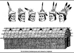 பாகனியத்திலிருந்து பெருமதப் பிடியில் சிக்கிய ஐரோப்பியம், மீண்டும் ஜனநாயகத்துக்குள் வருவதற்கே பூர்வீகக் குடிகளின் பங்களிப்பு தேவையாக இருந்திருக்கிறது. அமெரிக்காவில் குடியேறிய ஐரோப்பியர்களுக்கு, பூர்வீகக் குடிகள் வாழ்ந்த கூட்டமைப்புகள், அரச அதிகாரத்துக்கு ஒரு கவர்ச்சிகரமான மாற்றாக இருந்தது. அமெரிக்காவில் குடிபுகுந்த அமெரிக்கர்களின் மனத்தில், ஏற்கெனவே உருவாகிக்கொண்டிருந்த ஜனநாயகக் கோட்பாடுகளுக்கு ஏற்றவையாக, இரொக்யோஸ் (Iroquois) எனும் பூர்வீகக் குடிகளின் ஐங்குடிகளின் கூட்டமைப்பு இருந்தது. ஆனால், எந்தப் பூர்வீகக் குடிகளின் கூட்டமைப்பின் தாக்கத்தால் ஜனநாயகத்தன்மையை அமெரிக்க சட்டம் அடைந்ததோ, அதே சட்டம், பூர்வீகக் வகுடிகளின் உரிமைகளைப் பறித்தெடுக்கும் க்ஷரத்துகளை உருவாக்கியது. (Iroquois Constitution: A Forerunner to Colonists' Democratic Principles, The New York Times, 28-June-1987 மேலும் (Bruce E. Johansen, Native American Political Systems and the Evolution of  Democracy: An Annotated Bibliography, Greenwood Publishing Group,1996)).