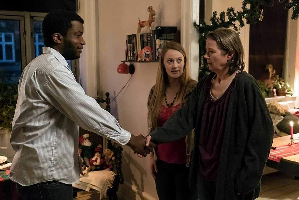 அந்நேரம் பார்த்து அழைப்பு மணி அடிக்கிறது. அவளின் தாய் விருந்தில் கலந்து கொள்ள வந்திருக்கிறாள். தான் விரும்புகிறவன் வந்திருக்கிறானென்றும் தன் தாயை அவனிடம் நாகரிகமாக நடந்து கொள்ள வேண்டுமென்றும் கேட்டுக்கொள்கிறாள். சரியென்று தலையாட்டுகிற தாய் உள் நுழைந்து அவனைக் கண்டவுடன் முகம் சுழிக்கிறாள். தன் பெயர் சொல்லி தானே முன் வந்து அறிமுகமாகி கைகுலுக்க அதை அறுவறுப்பாக உணர்கிறாள் இங்கெரின் தாய். வியர்த்து வழியும் அவனை வெறுப்பாக ஏறிட்டுவிட்டு சாப்பிடுகிறாயா என்று கேட்கும் மகளுக்கு பசியே போய்விட்டது என்று சொல்கிறாள் அவள். கண்டுபிடிச்சுட்டேன்னு சொன்னியே உனக்கு நல்ல ஒரு டேனிஷ் பையன் கிடைக்கலையா போயும் போயும் ஒரு...என்று குமட்டுகிற தாயை கோபமாக வீட்டைவிட்டு விரட்டுகிறாள் இங்கெர். உணர்விற்குப் பிறகான படுக்கை. இங்கெர் தான் க்வாமேவை கல்யாணம் செய்துகொண்டால் இரண்டு வருடங்களுக்குப் பிறகு அவனுக்கு நிரந்தக் குடியுரிமை அவனுக்குக் கிட்டும் என்று சொல்லி மேலும் அவன் தன்னை இதற்காக காதலிக்க வேண்டியதில்லை என்றும் இந்தக் காரியத்தை அவனுக்காக மட்டுமே செய்யப் போவதாகவும் சொல்கிறாள். க்வாமே பதிலுக்கு தான் அவளை மேலும் அதிகமாக நேசிப்பதாகச் சொல்லி அவளின் நெற்றியில் முத்தமிடுகிறான்.