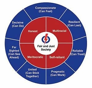 இந்தக் கொள்கைகளின் அடிப்படையில், PAP கட்சி நம்பகத்தன்மை, காரியவாதம், ஒற்றுமை, தொலைநோக்கு, தீர்க்க முடிவெடுத்தல், கருணை, விழுந்தால் எழுதல் போன்ற பண்புகளோடு செயல்படும்.