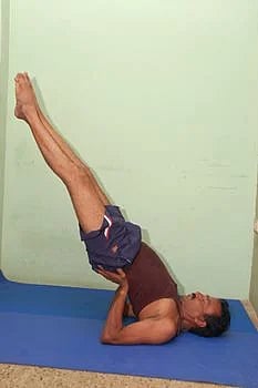 இரண்டு கால்களையும் மேலே நீட்டி உயர்த்தி, சர்வாங்காசனத்துக்கு வரவும்.