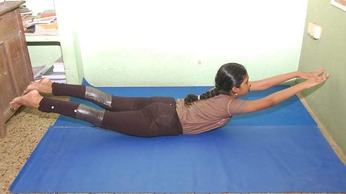 விரிப்பின் மீது குப்புறப்படுத்துக்கொள்ளவும்.