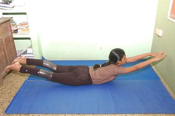 பின்னர் வலது கையையும் இடது காலையும் மட்டும் உயரத் தூக்கவும்.