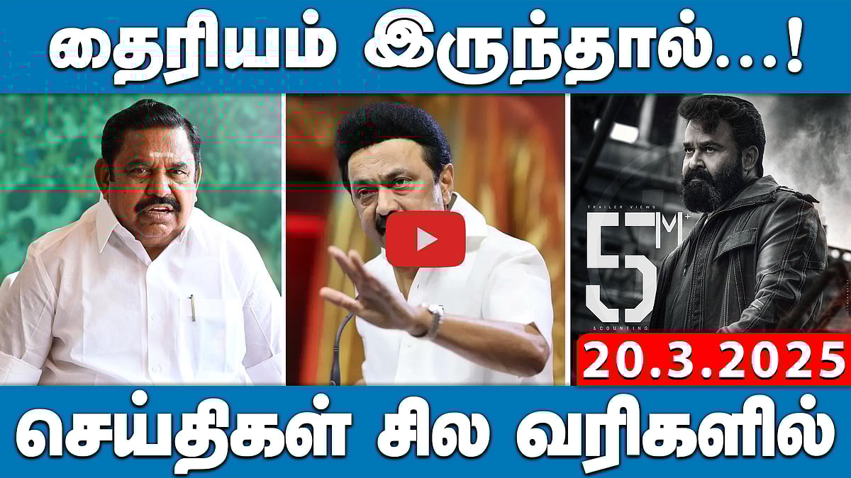 "தைரியம் இருந்தால்..." MK Stalin Vs Edappadi Palaniswami | செய்திகள்: சில வரிகளில் | 20.03.25