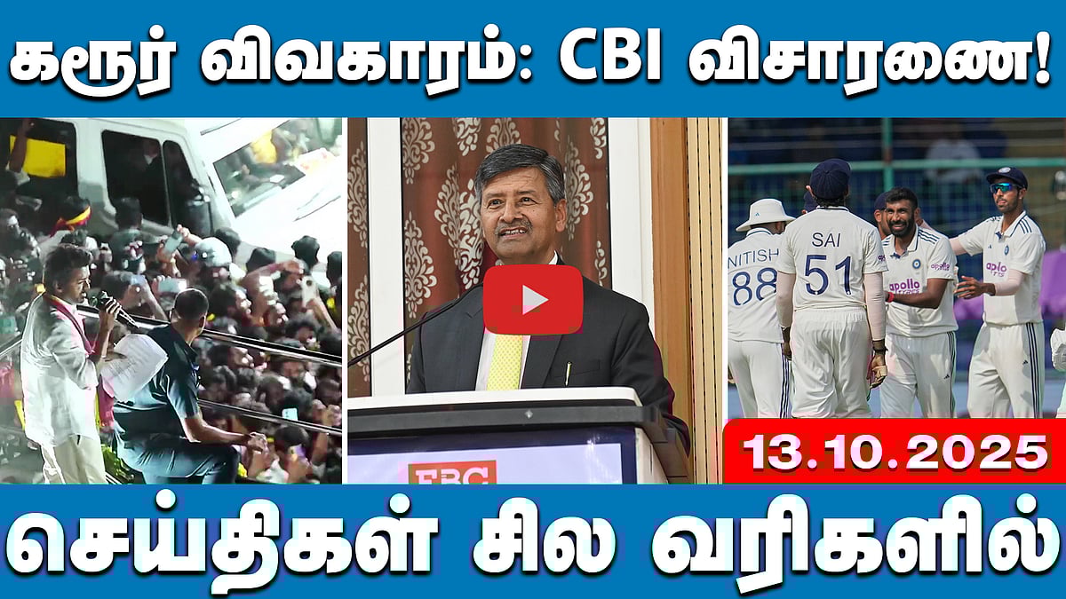 கரூர் கூட்ட நெரிசல் பலி!: CBI விசாரணைக்கு உத்தரவு | செய்திகள்: சில வரிகளில் | 13.10.25
