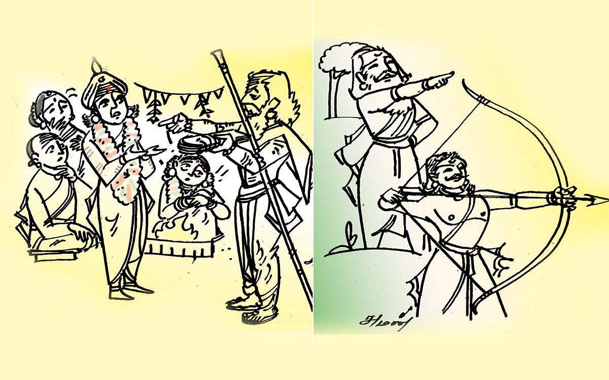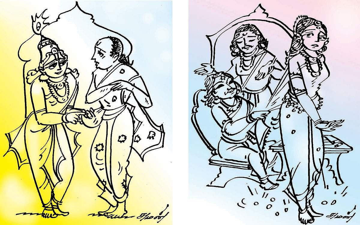 அவமானப்படுத்தப்பட்ட துரோணர் சபதமேற்றுத் தன் சீடன் அர்ஜுனன் மூலம் துருபதனைச் சிறைபிடிக்க, துரோணரைக் கொல்ல மகன் வேண்டி துருபதன் யாகம் செய்ய, அவர் பெற்ற பிள்ளைதான் திருஷ்டித்யுமன். தன்னைக் கொல்லப் பிறந்த திருஷ்டித்யுமனை சிறு வயது நண்பனின் மகன் என்ற ஒரே காரணத்துக்காக மாணவனாக ஏற்று கற்பித்த உத்தம ஆசிரியர் துரோணர். ஓர் கபடு வாராத நட்பு... இந்தத் துரோணர்தான் தன்னை மானசீக குருவாக ஏற்ற ஏகலைவனிடம் கட்டை விரலை கேட்டதற்காகப் பழிக்கப்படுகிறார்..