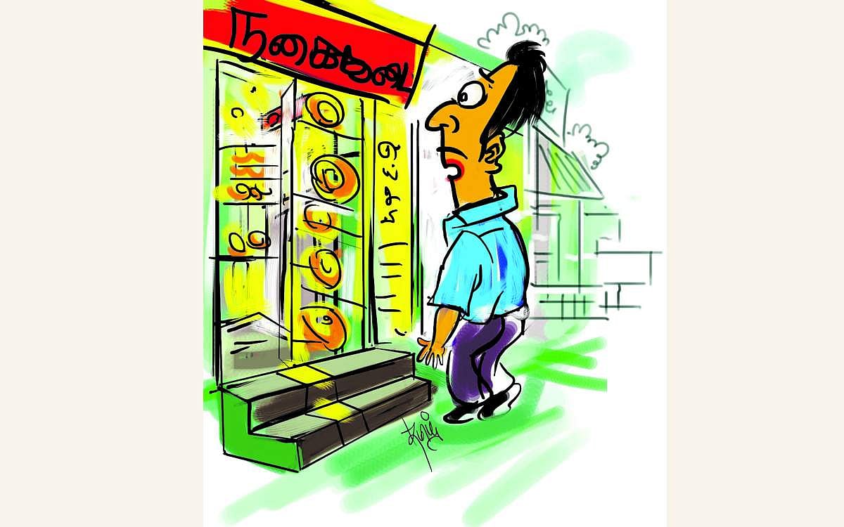 (ஸ்ரீ வில்லிபுத்தூர் நகைக்கடை ஒன்றின் விளம்பர போர்டில்)