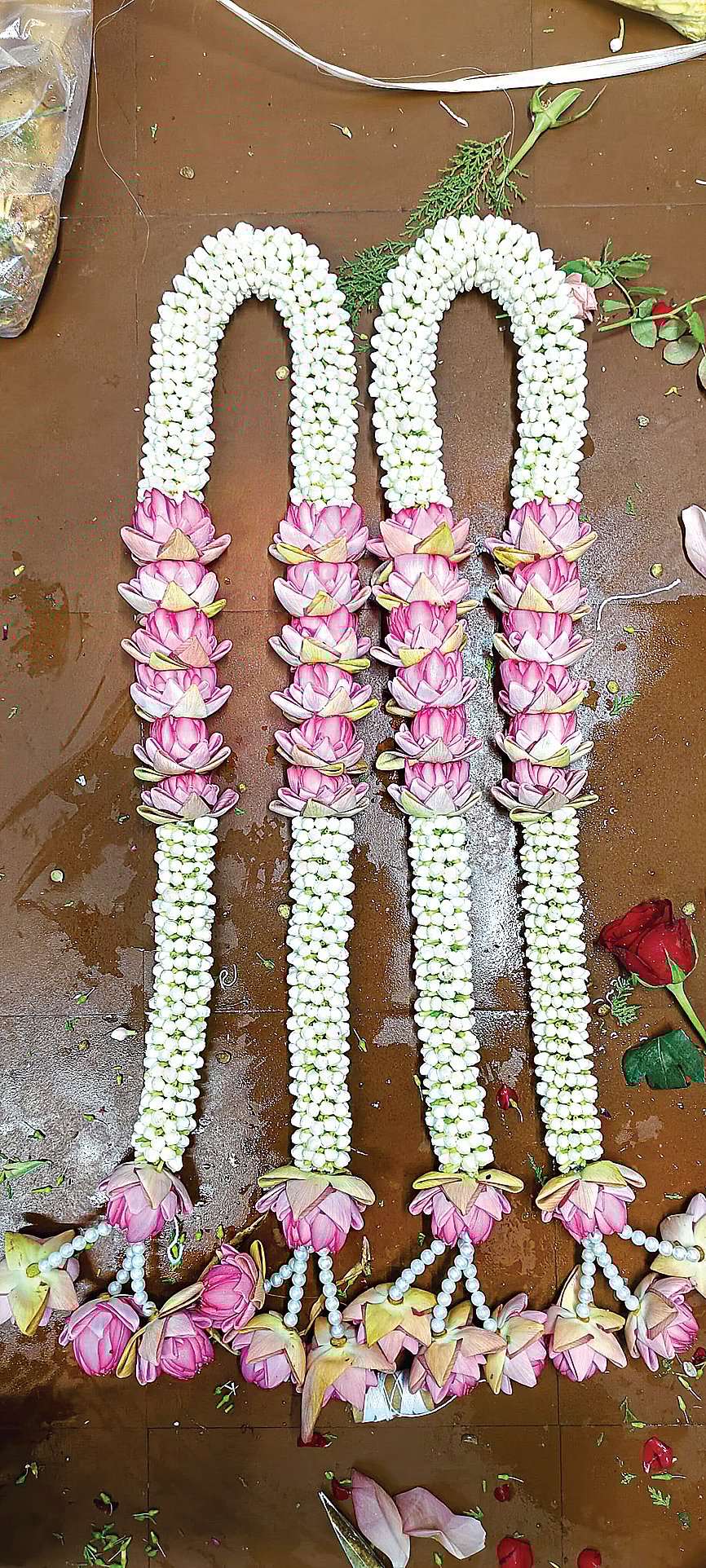 முன்பெல்லாம் கல்யாண மாலை என்றால் மூன்று நாள்கள் ஆனாலும் வதங்கிப்போகாது. முகூர்த்தத்துக்குப் பிறகு அவற்றைக் அரசங்குச்சியில் கோர்த்து வீட்டில் பிரத்தியேகமான இடத்தில் பத்திரப்படுத்துவார்கள். உலர்ந்து கொட்டிப் போகுமே தவிர அழுகிப் போகாது. ஆனால் தற்காலத்தில் முகூர்த்த மாலைகள் அழுகிப் போவதைப் பார்க்கும்போது மனசு சங்கடமாகிறது. இது தவறு என்பதை பலபேர் உணர்வதில்லை. ஜோடி மாலை என்பது குலம் தழைக்கிற விஷயம் இல்லையா? இன்னின்ன சடங்குகளுக்கு இன்னின்ன பூக்களால் தான் மாலை அணிய வேண்டும் என்கிற விதிகள் உண்டு.