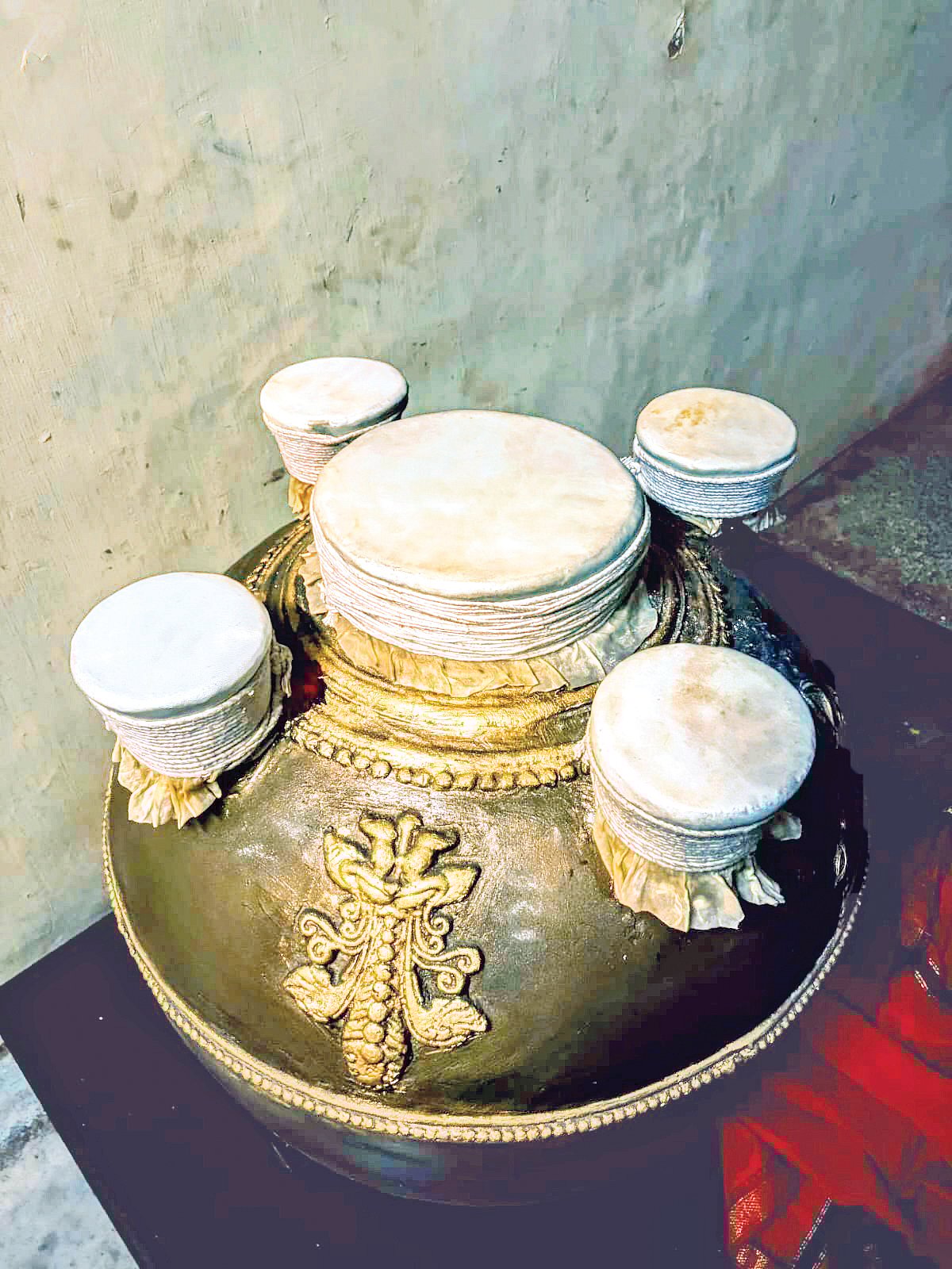 குடமுழா: அடுத்து குடமுழா. திருவாரூர் கோயிலில் இதனைக் காணலாம். அபூர்வமான தோற்கருவி. பெரிய உலோகக் குடத்தின் ஐந்து தனித்தனி முகங்கள் தோலால் மூடப்பட்டிருக்கும். இரு கைகளாலும் மாறி மாறித் தட்டும்போது இந்த ஐந்திலுமே வெவ்வேறு நாதங்கள் பிறக்கும். இந்தக் கருவியை காலை பூஜை நேரத்தில் தினமும் வாசிக்கிறோம்.