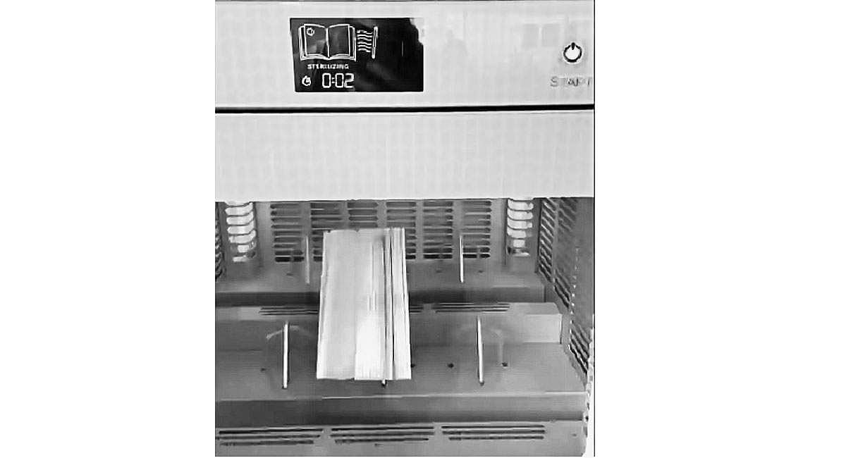 இந்தக் கருவியில் புத்தகத்தை வைத்துவிட்டு ஸ்டார்ட் பட்டனை அழுத்தினால் போதும், புத்தகத்தின் எல்லாப் பக்கங்களும் தூய்மையாக்கப்பட்டுவிடும். புற ஊதாக் கதிர்களைப் பயன்படுத்தி ஒரு புத்தகத்தை முப்பது விநாடிகளுக்குள் தூய்மைப்படுத்திவிடுகிறார்கள். நூலகத்திலிருந்து ஒரு புத்தகத்தைப் படிக்க எடுத்துச் செல்பவர் திரும்ப புத்தகத்தைத் தரும்போது, இந்த தூய்மைப்படுத்தும் பணி செய்யப்படுகிறது.