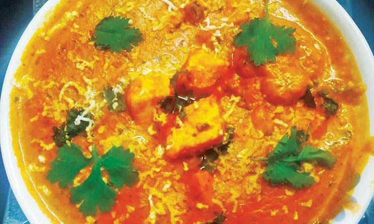 செய்முறை: மிளகாய் வற்றல், மல்லி, கசகசா, முந்திரி பருப்பு, தேங்காய்த் துருவல் ஆகியவற்றை எண்ணெய்விட்டு, தனித்தனியாக வறுத்து, தயிர் சேர்த்து நைஸôக அரைத்துக் கொள்ளவும். வெங்காயம் தக்காளியைப் பொடியாக நறுக்கி வைக்கவும். வாணலியில் நெய்விட்டு காய்ந்ததும், பனீர்த் துண்டுகளைப் போட்டு லேசாக வறுத்து எடுக்கவும்.