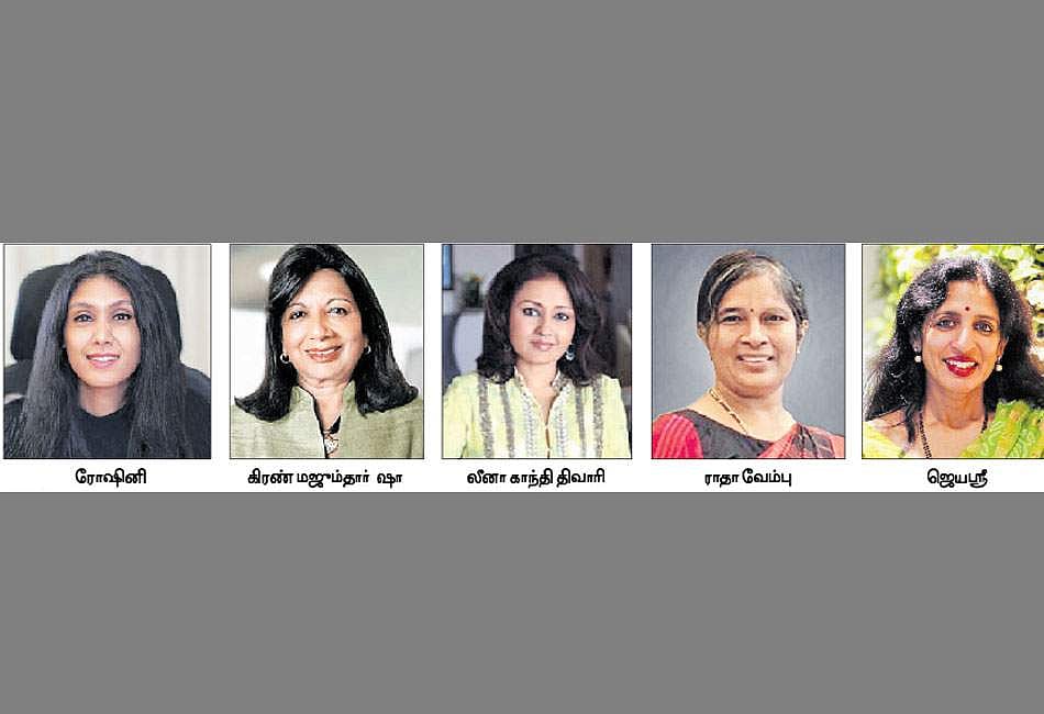 பெரும் பணக்காரர்களாக தங்களைத் தாங்களே உயர்த்திக் கொண்டவர்களில் கிரண் மஜும்தார் ஷா முதலிடத்தில் உள்ளார். இரண்டாவது இடத்தில் ஹோகோ நிறுவனத்தின் ராதா வேம்பு, மூன்றாவது இடத்தில் அரிஸ்டா நெட்வொர்க்ஸ் நிறுவனத்தின் ஜெயஸ்ரீ ஆகியோர் இடம் பெற்றுள்ளனர்.