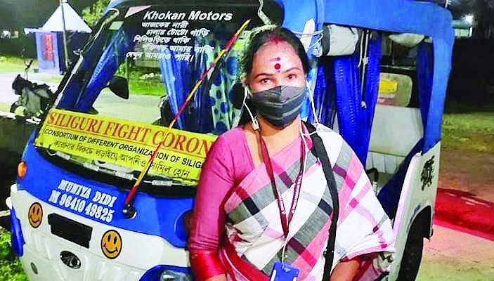 கரோனா ஏற்படுத்திய தாக்கத்தால் லட்சக்கணக்கானோர் பாதிக்கப்பட்டிருப்பதால், ஆம்புலன்ஸ் சேவைகளுக்கு தட்டுப்பாடு ஏற்பட்டிருக்கும் இந்த சூழலில், ஆங்காங்கே, ஒரு சிலர் தாங்கள் இயக்கும் வாடகை கார்கள், ஆட்டோக்கள் மூலம் மக்களுக்கு உதவிக்கரம் நீட்டி வருகின்றனர். அந்த வகையில் மேற்கு வங்கத்தைச் சேர்ந்த பெண் ஆட்டோ ஓட்டுநர் மன்முன் சர்கார், கரோனாவால் பாதிக்கப்பட்ட மக்களுக்கு 24 மணி நேரமும் தன்னுடைய இ-ரிக்ஷா மூலம் இலவச சேவை வழங்கி வருகிறார். வடக்கு வங்காளத்தின் சிலிகிரி நகரத்தைச் சேர்ந்த முதல் பெண் இ-ரிக்ஷô ஓட்டுநரும் இவரே.