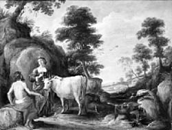பின்னர் "லோ' வைத் தன்னுடன் அழைத்துக் கொண்டு பூமியை ஆனந்தமாகச் சுற்றி வந்தார்! ஆனால் ஹீராவிற்கு எல்லா விஷயங்களும் தெரிந்து விட்டன. அவள் பூமியை நோக்கிப் பறந்து வந்தாள். இதை அறிந்த ஜீயெஸ் லோவை ஒரு பசுமாடாக மாற்றினார்! ஹீரா வந்து பார்த்தபோது ஜீயெஸின் அருகே ஒரு பசுமாடு இருந்தது.