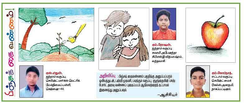 பிஞ்சுக் கைவண்ணம் பகுதிக்கு அனுப்பப்படும் ஓவியத்துடன், பள்ளி முகவரி, படிக்கும் வகுப்பு, குழந்தையின் பாஸ் போர்ட் அளவு வண்ணப் புகைப்படம் ஆகியவற்றைக் கட்டாயம் இணைத்து அனுப்பவும்.