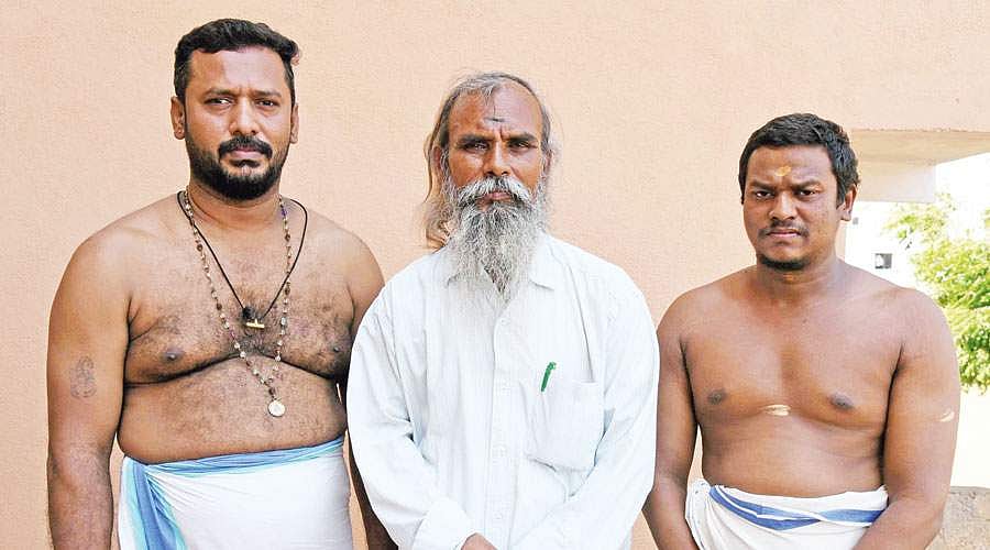 கத்திரி வெயிலுக்கு குன்றத்தூரில் செண்டை மேள வாத்தியங்களின் ஓசையை கேட்டு சென்ற போது வேட்டி கட்டிக்கொண்டு நெற்றி, மார்பு, கைகளில் சந்தன திலகமிட்டு வாசித்துக் கொண்டிருந்த நூற்றுக்கணக்கான