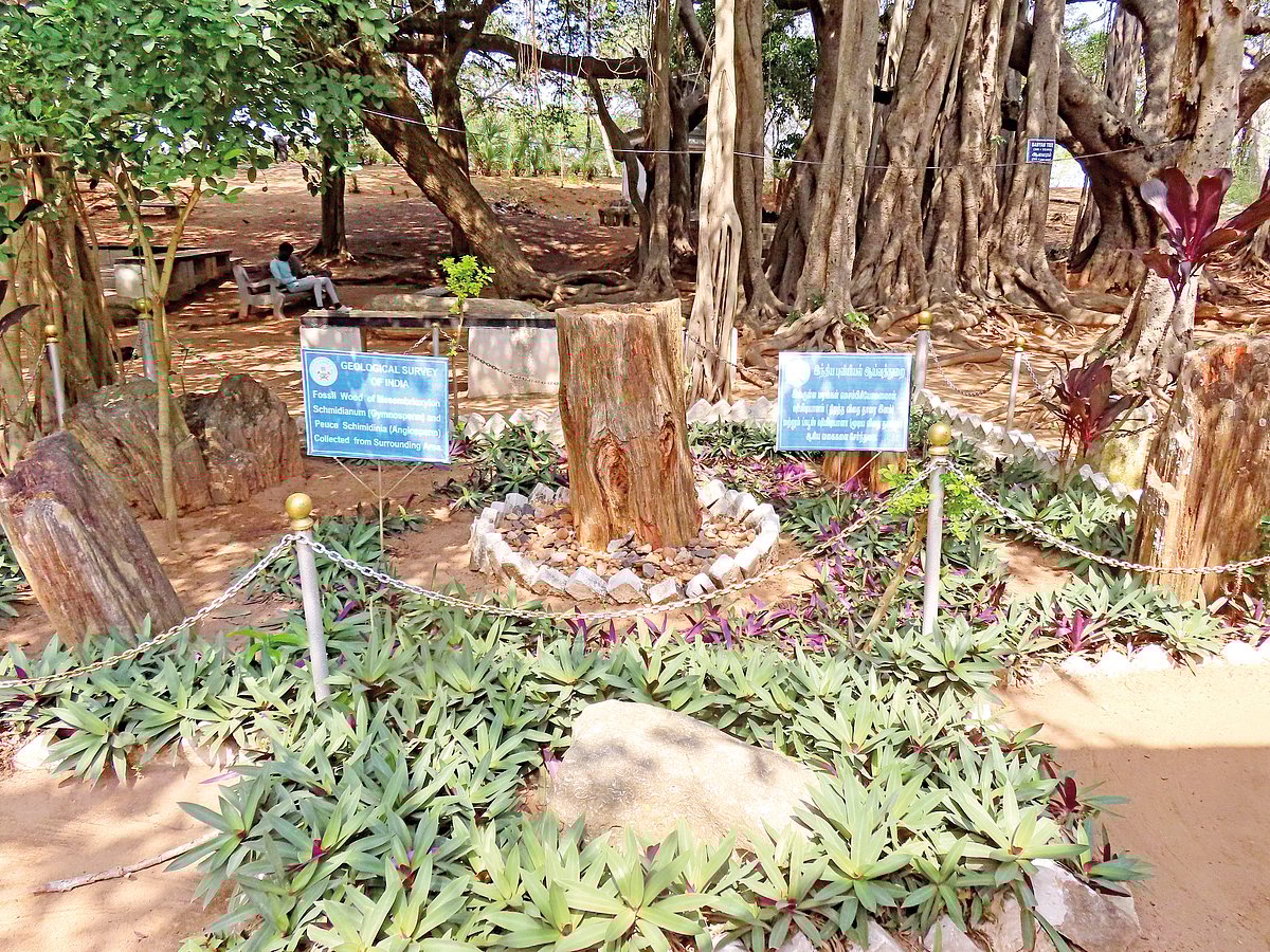 மரப் பூங்கா அமைந்துள்ளது. இங்குள்ள கல்மரங்கள் இரண்டு கோடி ஆண்டுகளுக்கு முற்பட்டதாகக் கருதப்படுகிறது. மத்திய அரசின் புவியியல் ஆய்வுத் துறை இதை வேலியிட்டு, பராமரித்து வருகின்றது.