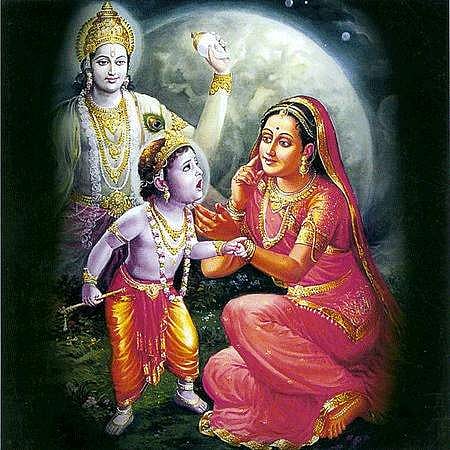 கண்ணனின் பால சேஷ்டிதங்களை (அறியாப் பருவ பிள்ளை விளையாட்டு) ஸ்ரீமத் பாகவதம் சுவைபட விவரிக்கிறது. ஆய்ப்பாடித் தெருவில், கண்ணன் பிற குழந்தைகளுடன் விளையாடிக் கொண்டிருக்கிறான். அப்பொழுது விளையாட்டாக "மண்ணை' அள்ளித் தன் வாயில் கண்ணன் போட்டுக் கொள்கிறான். பலராமன் உட்பட பிற பிள்ளைகள் யசோதையிடம் சென்று இச்செய்தியைக் கூறுகின்றனர். அங்கு வந்த யசோதை, கண்ணனை அதட்டி அவன் வாயைத் திறக்கச் சொல்கிறாள். கண்ணனும் தன் வாயைத் திறக்க, யசோதையின் கண்களுக்கு அண்ட சராசரங்களும் தெரிந்தன என்று ஸ்ரீமத் பாகவதம் விவரிக்கிறது. ஆனால், பெரியாழ்வார் திருமொழியில் இந்த நிகழ்வு முற்றிலும் மாறுபட்ட சூழ்நிலையில் நிகழ்ந்ததாகக் குறிப்பிடப்பட்டுள்ளது.