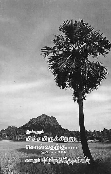 தஞ்சாவூா், அம்மன் பேட்டையிலிருந்து கவிஞா் சு. பொன்னியின்செல்வன் எழுதிய ‘இன்னும் மிச்சமிருக்கிறது; சொல்வதற்கு...’ என்கின்ற ஹைக்கூ கவிதைத் தொகுப்பிலிருந்து...
