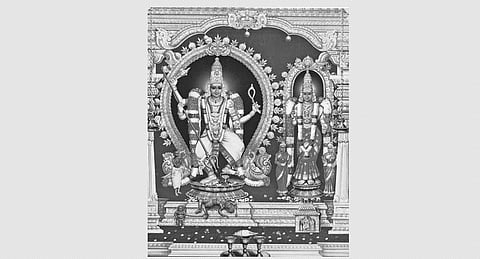 நிக்கிரகானுக்கிரம் செய்த அவதாரத்தில் (தோற்றநிலை) தெற்கு முகமாக எழுந்தருளியுள்ளார். வலகத்திருக்கரங்களில் சூலமும், மருவும் உள்ளன. இடத்திருவடியால் உதையுண்ட யமனார் தலைகீழாக வீழ்ந்து கிடக்கின்றார். வீழ்ந்து கிடக்கும் யமனை ஒரு சிவபூதம் கயிறுகட்டி இழுத்து அப்பறப்படுத்தும் காட்சி காணற்கரியது.