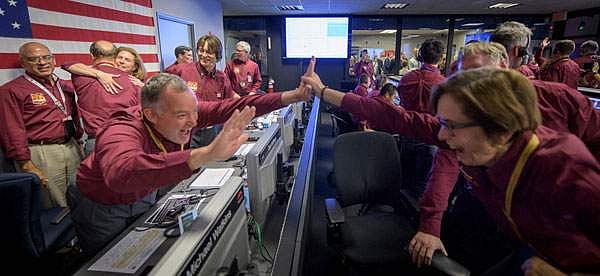 இதை கொண்டாடும் விதமாக கலிஃபோர்னியாவின் ஜெட் உந்துவிசை ஆய்வகத்தில் உள்ள நாசாவின் கட்டுப்பாட்டு மையக்குழுவினர் கரகோஷம் எழுப்பியும், ஒருவரை ஒருவர் ஆரத்தழுவிக் கொண்டும், கைகளை குலுக்கியும் தங்களது மகிழ்ச்சியை வெளிப்படுத்தினர். சிலர் ஆர்வ மிகுதியால் உற்சாகத்துடன் துள்ளிக் குதித்தனர்.