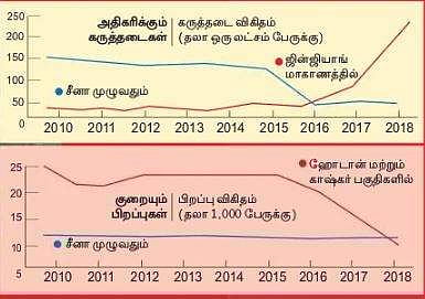 ஜின்ஜியாங் மாகாணம் முழுவதும் பிறப்பு விகிதம் 24 சதவீதம் சரிந்துள்ளது. ஆனால், தேசிய அளவில் இந்த விகிதம் வெறும் 4.2 சதவீதமே சரிந்துள்ளது.