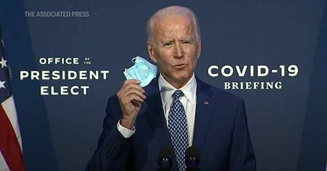 கரோனா நோய்தொற்றுப் பரவலை எதிர்த்துப் போராட அனைவரும் "முகக்கவசம் அணிய வேண்டும்" என அதிபராக தேர்ந்தெடுக்கப்பட்டுள்ள ஜோ பைடன் அமெரிக்க மக்களுக்கு வேண்டுகோள் விடுத்துள்ளார்.
