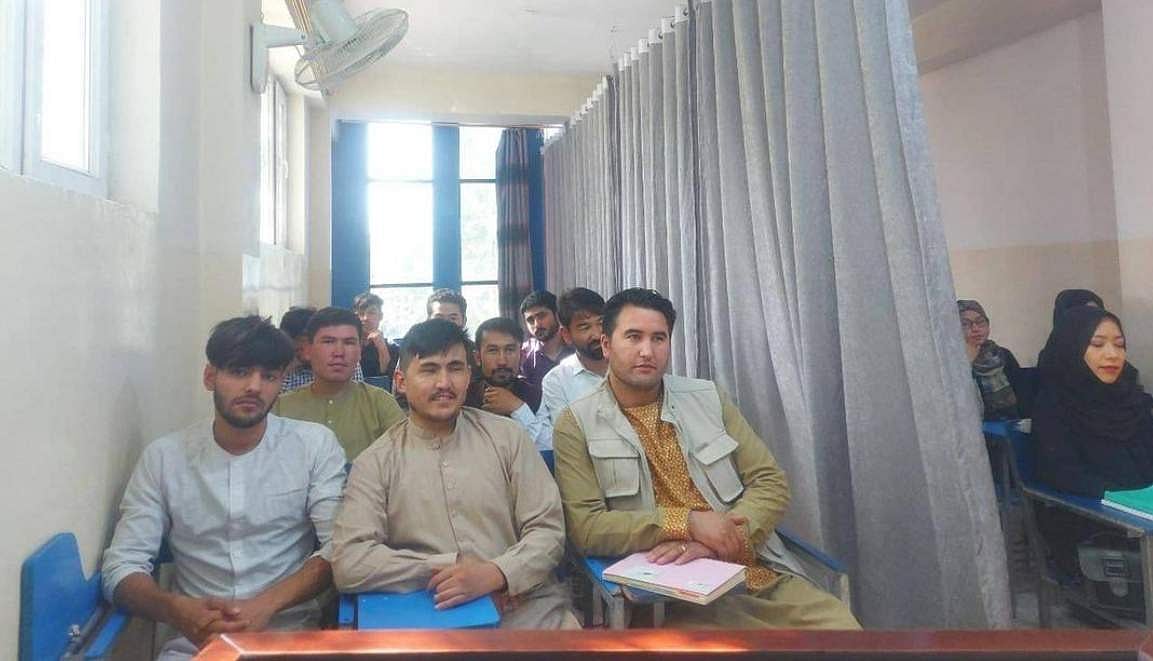 பல்கலைக்கழக வகுப்பறைகளுக்குள், மாணவ, மாணவிகளுக்கென்று  தனித்தனி வகுப்பறைகளை ஏற்படுத்த முடியாததால், திரைச்சீலை கொண்டு பிரிக்கப்பட்டுள்ளது. ஒரே வகுப்பறையில் அமர்ந்து, மாணவிகளும் மாணவர்களும் கல்வி பயிலக் கூடாது என்று தலிபான்கள் உத்தரவிட்டிருக்கும் நிலையில், இவ்வாறு மாற்றியமைக்கப்பட்டிருப்பதாக ஆப்கான் செய்தி நிறுவனம் புகைப்படத்துடன் சுட்டுரையில் தகவல் வெளியிட்டுள்ளது.