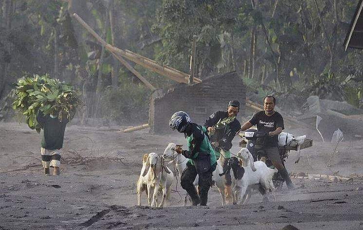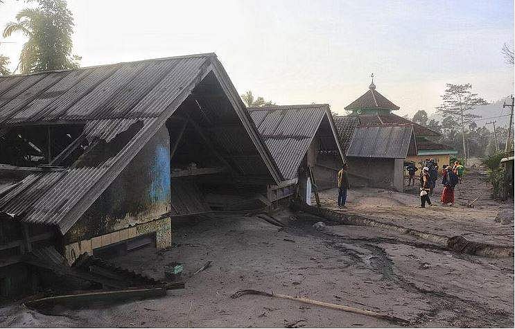பருவமழை தொடங்கிய நிலையில், இந்தோனேசியாவில் மிகப் பெரிய எரிமலையில் ஏற்பட்ட சீற்றம் காரணமாக அது வெடித்துச் சிதறியதால் அருகிலிருந்த கிராமங்களில் வீடுகள் பாலங்கள் நாசமாகின.