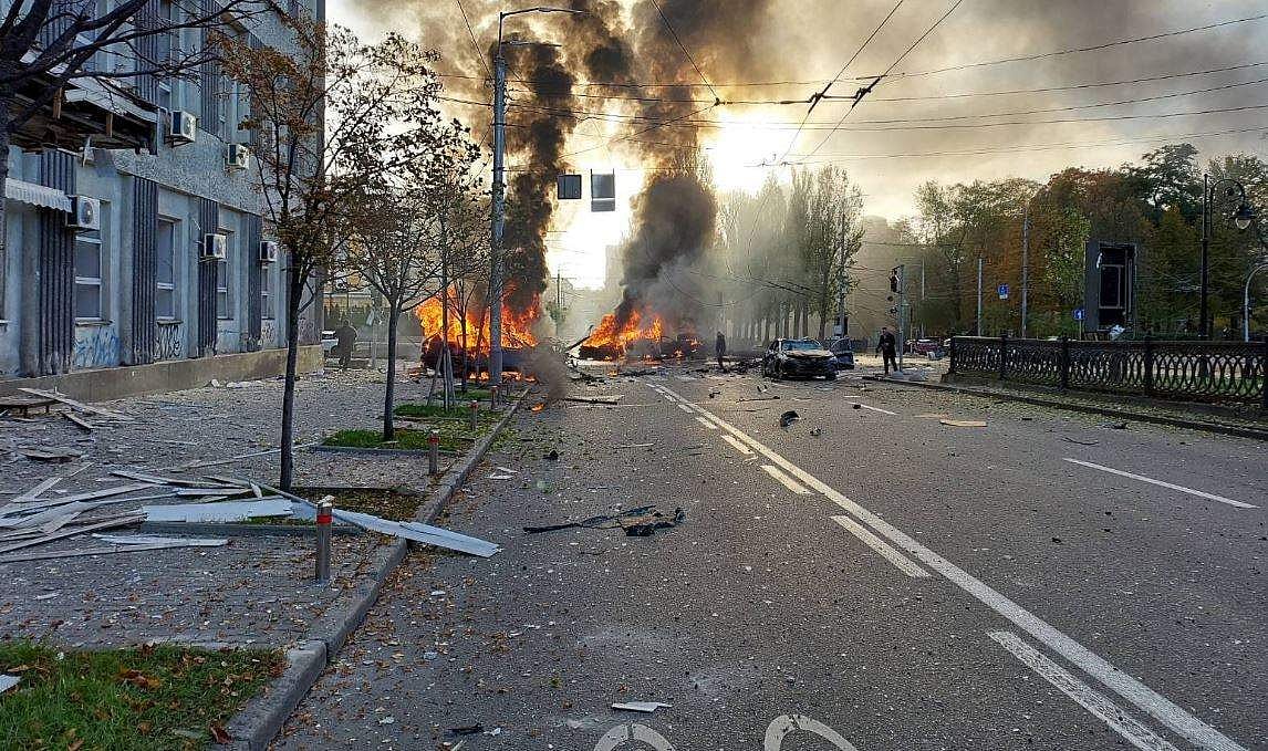 கீவின் ஷெவ்சென்ஸ்கிவ்ஸ்கி மாவட்டத்தில் நடைபெற்ற இந்த தாக்குதல் குறித்த விடியோ சமூக வலைத்தளங்களில் வைரலாகி வருகிறது.