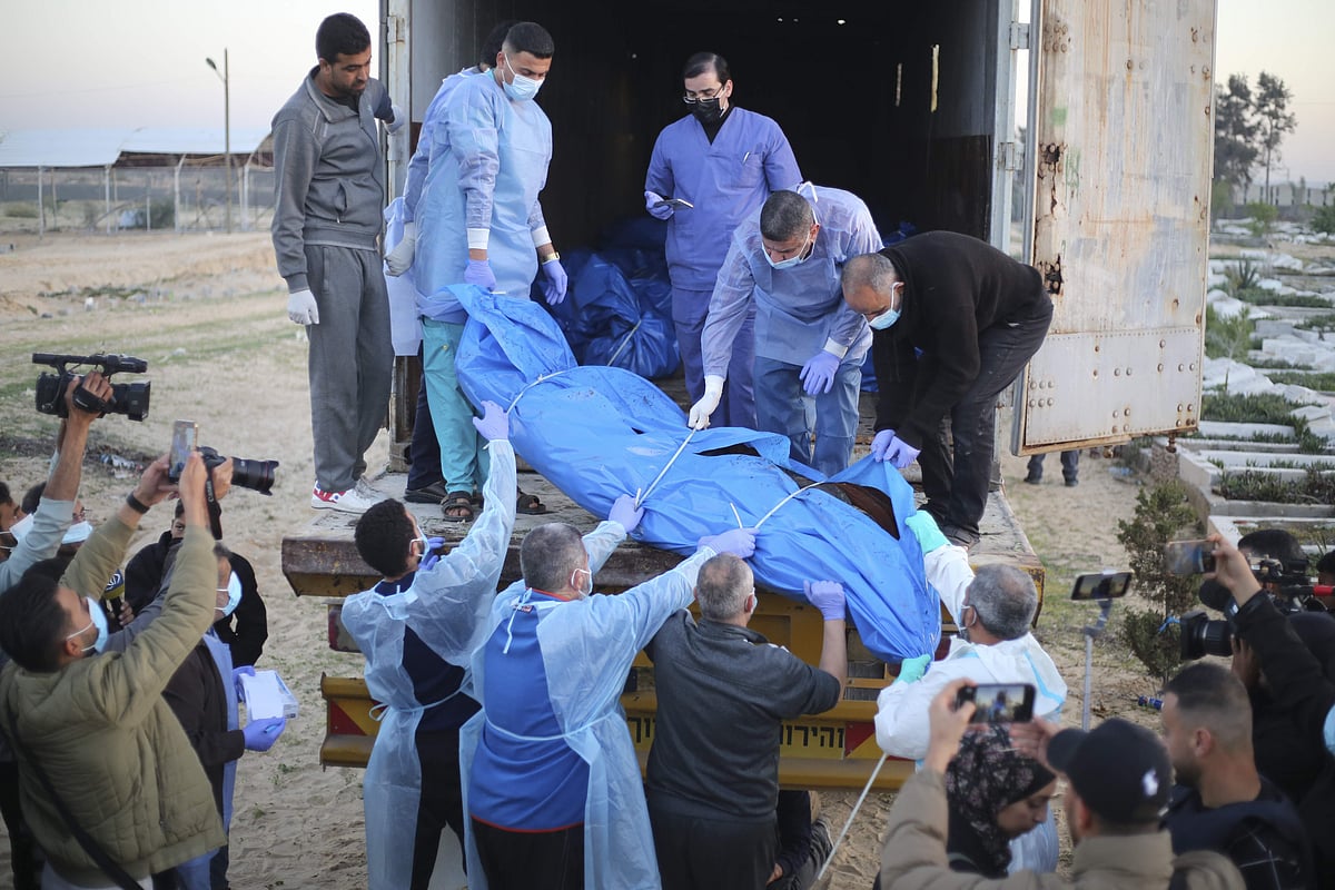 அகழியில் பாலஸ்தீனர்களின் உடல்கள்... உறைய வைக்கும் படங்கள்!