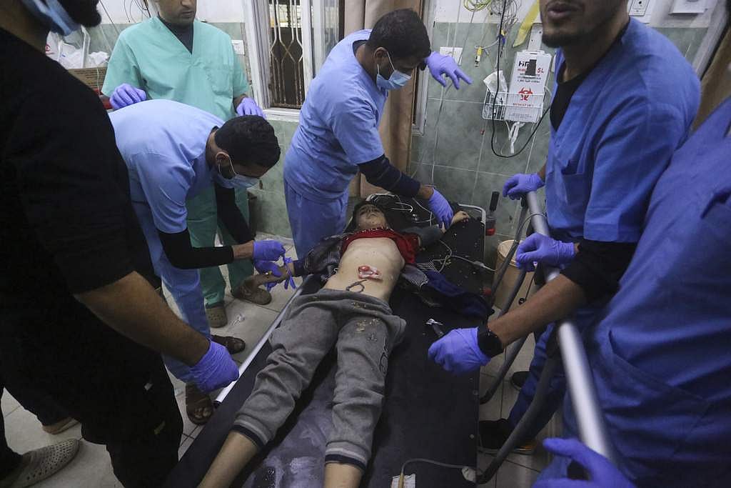 காயமுற்ற சிறுவனுக்குச் சிகிச்சை அளிக்கும் மருத்துவர்கள் | AP