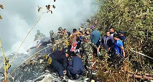 பத்து வெளிநாட்டினர் உள்பட 72 பேருடன் சென்ற நேபாள பயணிகள் விமானம் ஞாயிற்றுக்கிழமை பொக்ரா விமான நிலையத்தில் தரையிறங்கும் போது விழுந்து விபத்துக்குள்ளாகி தீப்பிடித்து எரிந்தது.