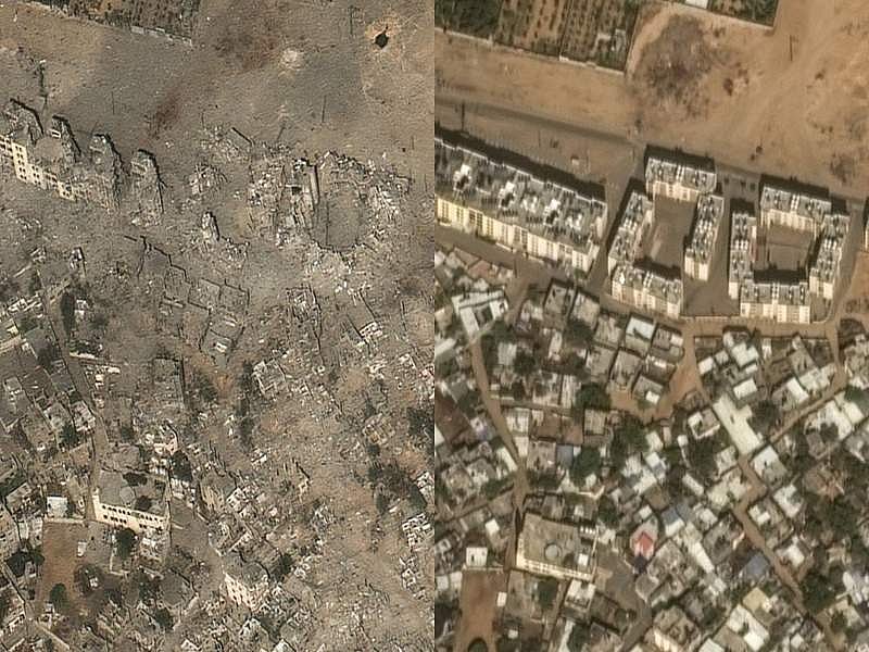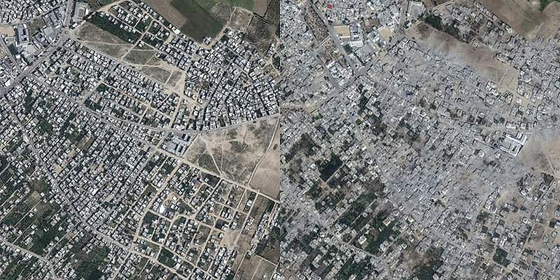 கடந்த மே மாதத்தில், காஸா நகரை செயற்கைக்கோள் எடுத்த புகைப்படத்தையும், அக்டோபர் 21ஆம் தேதி செயற்கைக்கோள் எடுத்த புகைப்படத்தையும் ஒப்பிட்டு, இஸ்ரேல் தாக்குதலால் காஸா நகரம் எந்த அளவுக்கு உருக்குலைந்துள்ளது என்பது தெள்ளத் தெளிவாகக் காட்டப்பட்டுள்ளது.