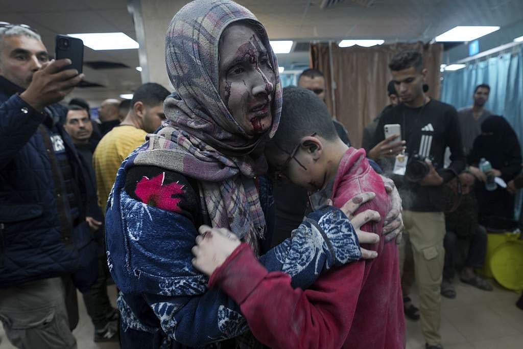 தெயிர் அல்-பலா மருத்துவமனையில் காயமுற்ற பாலஸ்தீன தாய் மற்றும் மகன் | AP