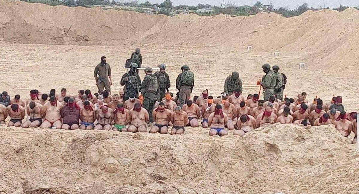 வடக்கு காஸாவின் பீட் லஹியா பகுதியில் சந்தேகத்துக்குரிய பாலஸ்தீனர்களை இஸ்ரேல் தடுத்து வைத்துள்ள புகைப்படங்கள் வெளியாகி அதிர்வலையை ஏற்படுத்தியுள்ளது.