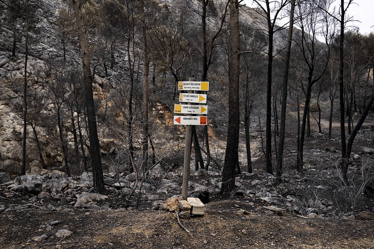 கிழக்கு ஸ்பெயினில் நேற்று (நவம்பர் 3) ஏற்பட்ட காட்டுத்தீயால் சுமார் 4900 ஏக்கர் நிலங்கள் தீயில் கருகின.