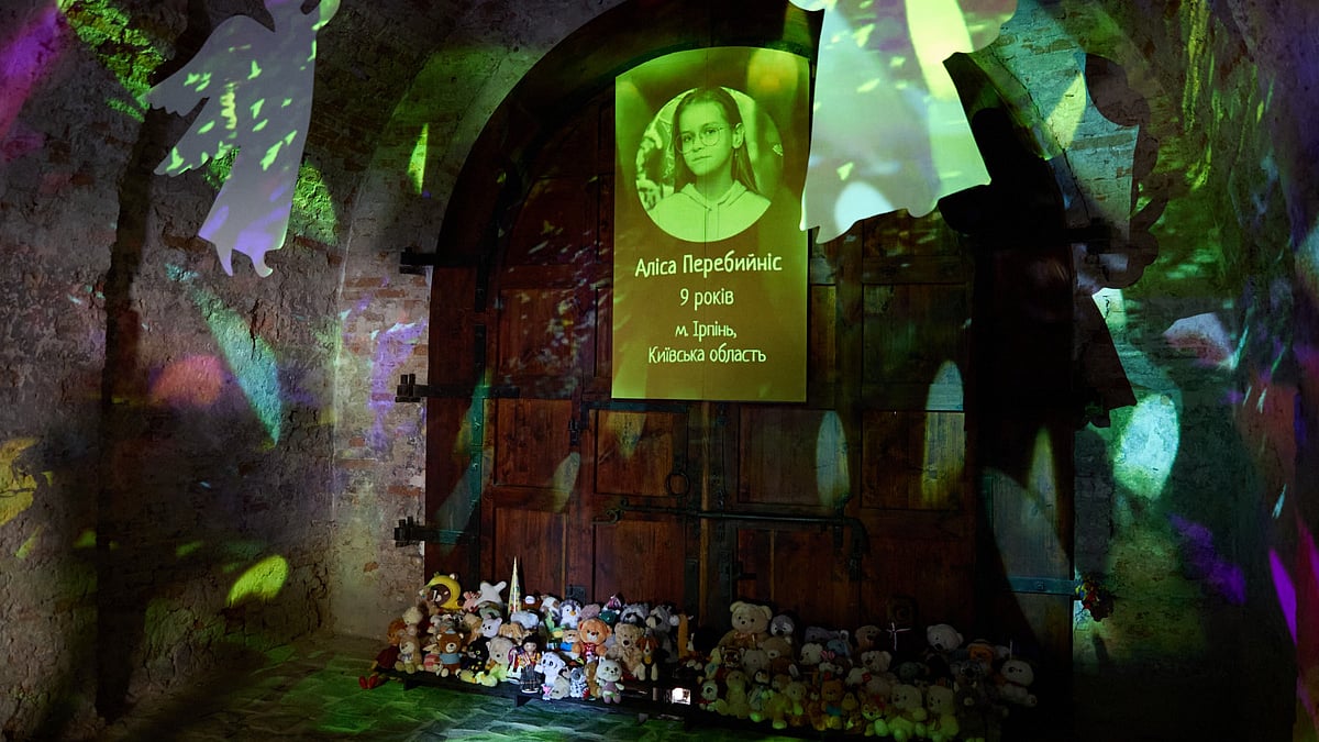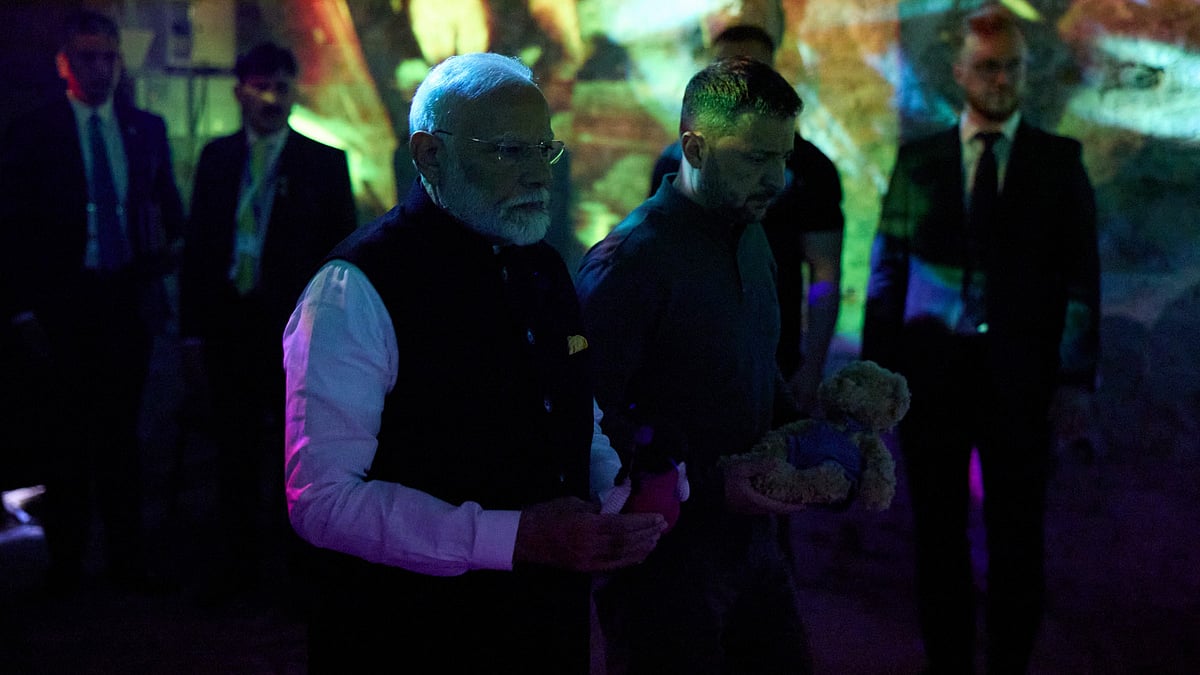 ரஷிய தாக்குதலில் உயிரிழந்த குழந்தைகளின் நினைவிடத்தில் இரு நாட்டுத் தலைவர்களும் அஞ்சலி செலுத்தினர்.