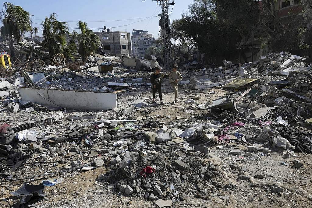 கட்டட இடிபாடுகளிடையே பாலஸ்தீன சிறுவர்கள் | AP