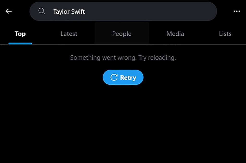 டெய்லர் ஸ்விப்ட் குறித்து ட்விட்டரில் தேடுபவர்களுக்கு, “இது உங்கள் தவறல்ல- வருந்த வேண்டாம்” என்கிற செய்தி ‘மீண்டும் தேடுங்கள்’ என்பதுடன் இணைத்து காண்பிக்கப்பட்டது.