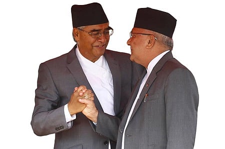 ஷேர் பகதூர் தேவுபாவுடன் (இடது) கே.பி. சர்மா ஓலி.