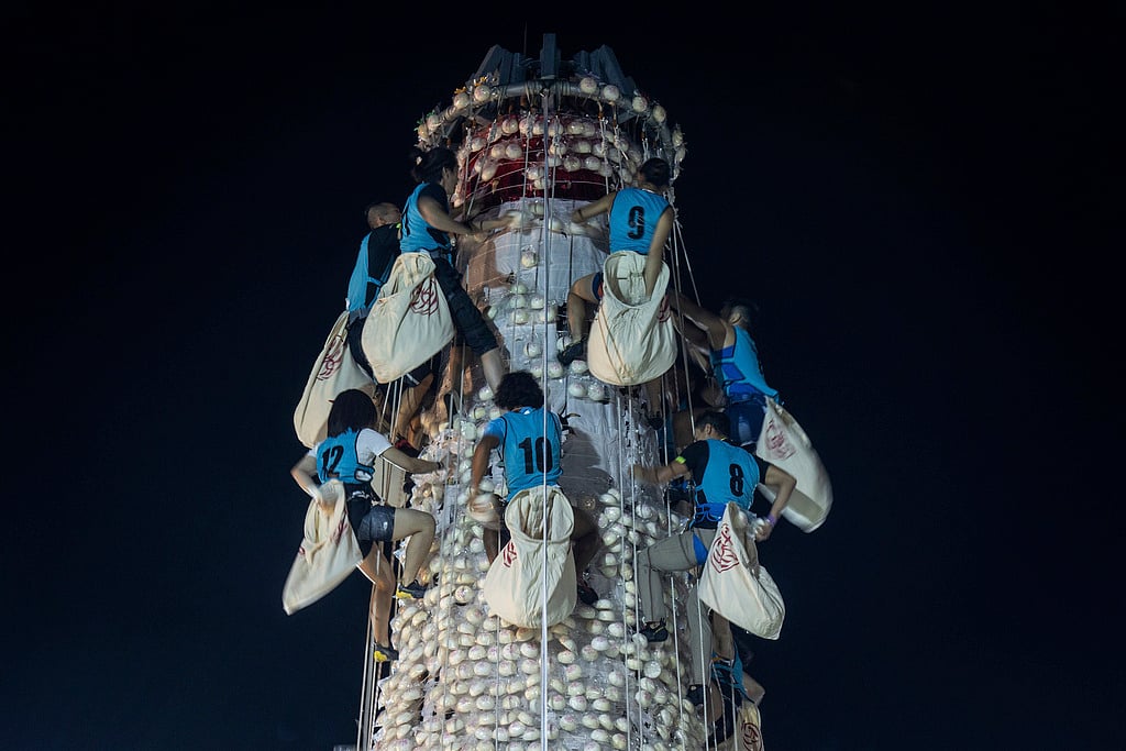 வியாழக்கிழமை நள்ளிரவு நடைபெற்ற இத்திருவிழாவிற்காக, சுமார் 9,000 பிளாஸ்டிக் பன்களால் கோபுரம் அமைக்கப்பட்டிருந்தது. இதற்காக 46 அடி உயர, பன்களால் அலங்கரிக்கப்பட்ட கம்பத்தில் ஏறி பன்களைப் போட்டி போட்டுக்கொண்டு பறித்தனர் போட்டியாளர்கள். இந்த திருவிழாவை காண உள்ளூர் மட்டுமன்றி ஏராளமான வெளிநாட்டினரும் வந்திருந்தனர்.
