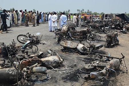 நைஜீரியாவின் ஜிகாவா மாகாணம், மாஜியா நகர நெடுஞ்சாலையில் பெட்ரோல் லாரி தீப்பிடித்து எரிந்ததால் எழுந்த புகைமண்டலம். ~பாகிஸ்தானின் பஹாவல்பூா் மாவட்டத்தில் பெட்ரோல் லாரி விபத்தில் உருக்குலைந்த வாகனங்கள்.