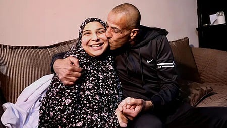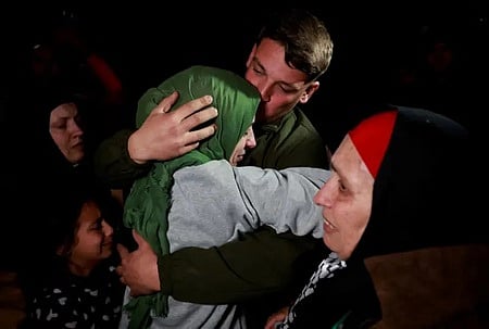 இஸ்ரேலால் விடுதலை செய்யப்பட்ட கைதிகளை உணா்ச்சி பொங்க வரவேற்ற உறவினா்கள்.