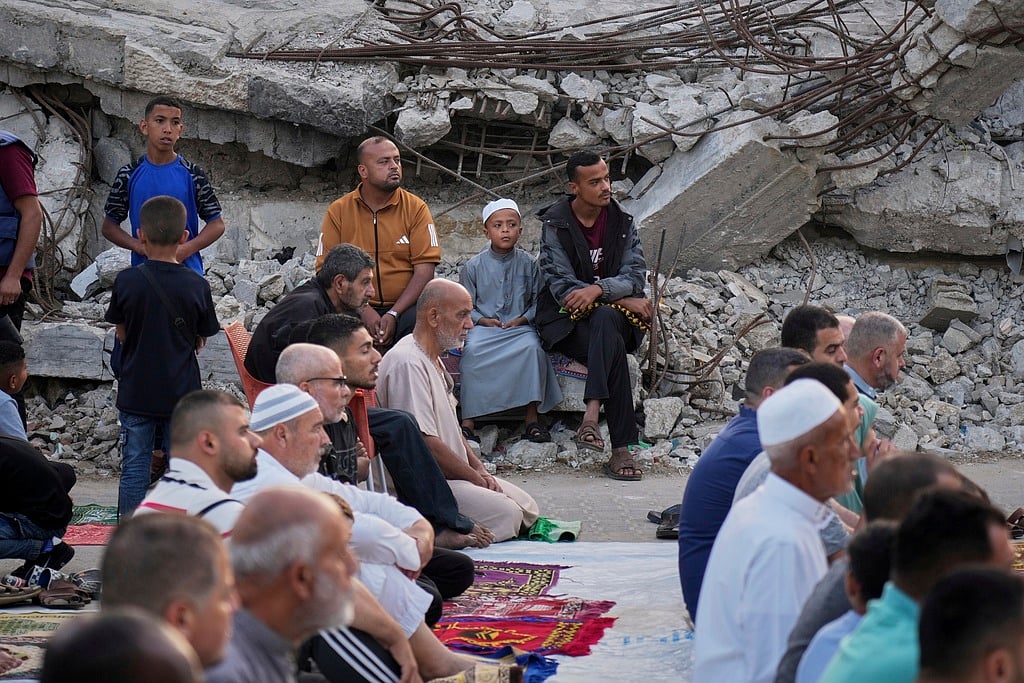 ஈத் திருநாளையொட்டி பாலஸ்தீனத்தில் உள்ள இஸ்லாமியர்கள் தொழுகை மேற்கொண்டனர். இஸ்ரேல் தாக்குதலில் தரைமட்டமான மசூதி இருந்த பகுதிகளில் தொழுகை செய்தனர்.