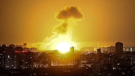 கீவ் நகரில் ரஷியா நடத்திய வான்வழித் தாக்குதலில் எழுந்த நெருப்புப் பிழம்பு