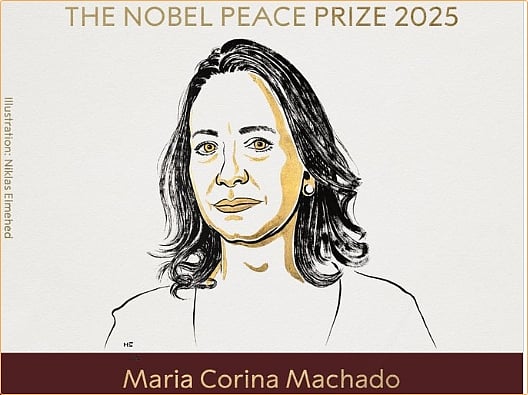 தென் அமெரிக்காவின் வடக்கு கடற்கரையில் அமைந்துள்ள வெனிசுவேலாவில் மக்களின் ஜனநாயக உரிமைகளை மேம்படுத்துவதற்காக போராடிய மரியா கொரினா மச்சாடோவுக்கு, நிகழாண்டின் அமைதிக்கான நோபல் பரிசு வழங்கப்படும் என நோபல் பரிசு தெரிவுக் குழு அறிவித்துள்ளது. இவர் தி டைம்ஸ் இதழின் 2025 ஆம் ஆண்டில் பிரபலமிக்க முதல் 100 பேரிலும் இடம்பெற்றுள்ளார்.