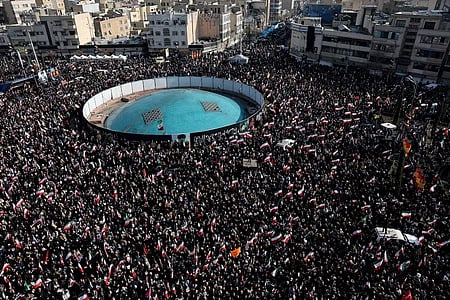 மோஜ்தபா கமேனியின் நியமனத்தை வரவேற்று ஈரான் தலைநகா் தெஹ்ரானில் திரண்ட பொதுமக்கள். ~